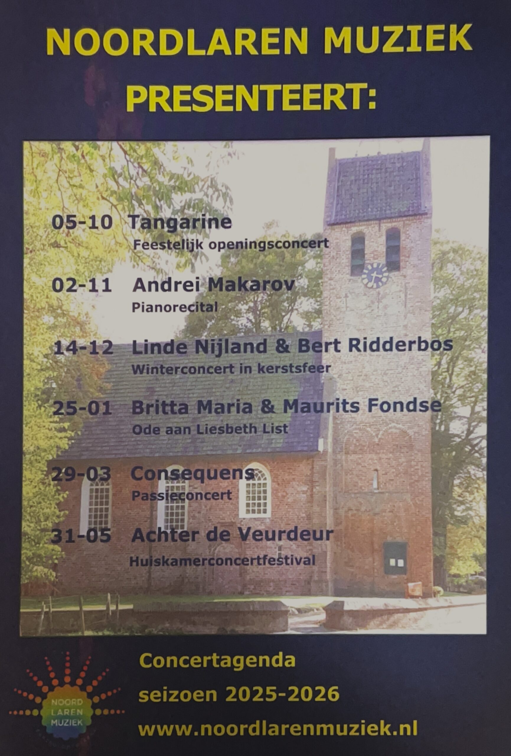 Noordlaren Muziek organiseert kleine en betaalbare concerten in Noordlaren (Groningen). De dorpskerk (Bartholomeuskerk) pal in het centrum is de thuishaven. In de pauzes wordt er koffie en thee geschonken in Dorpshuis de Hoeksteen, tegenover de kerk. Noordlaren Muziek bestaat uit Dirk Herman de Jong, Carolien Overweg, Elsa Veldman en Ditty Verveda.